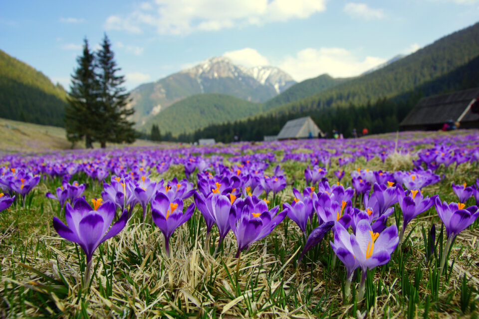 春を迎えると、タトラ山脈では、薄紫色をしたクロッカスが咲き乱れます。