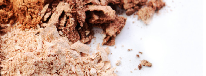色とりどりのミネラルを化粧品に適した配合、色にブレンドして出来上がります。