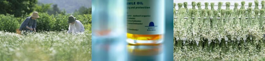 その畑で栽培したハーブやこの土地に自生する植物を原料にスキンケア製品を作っています。